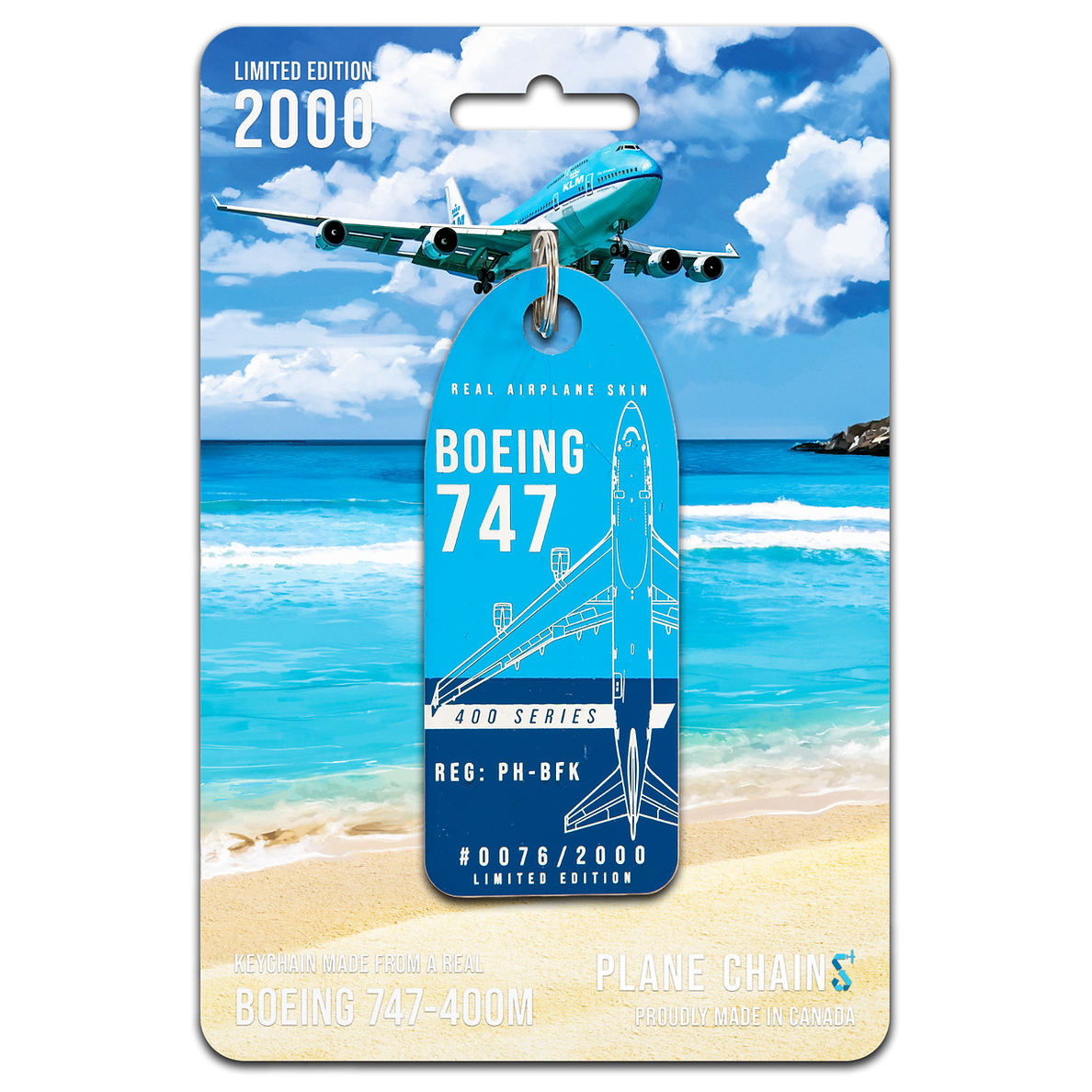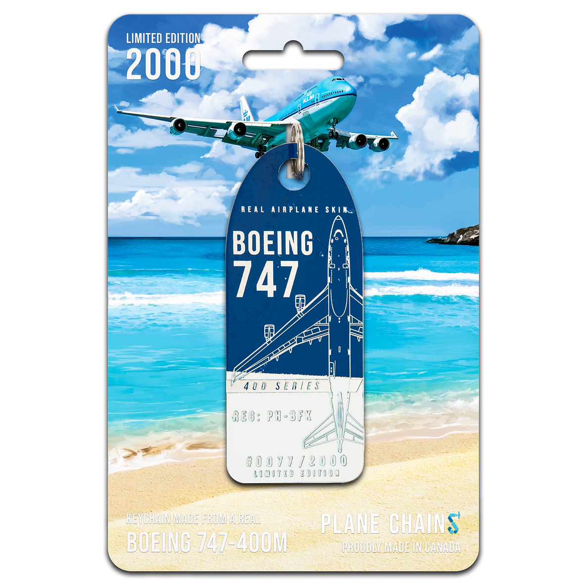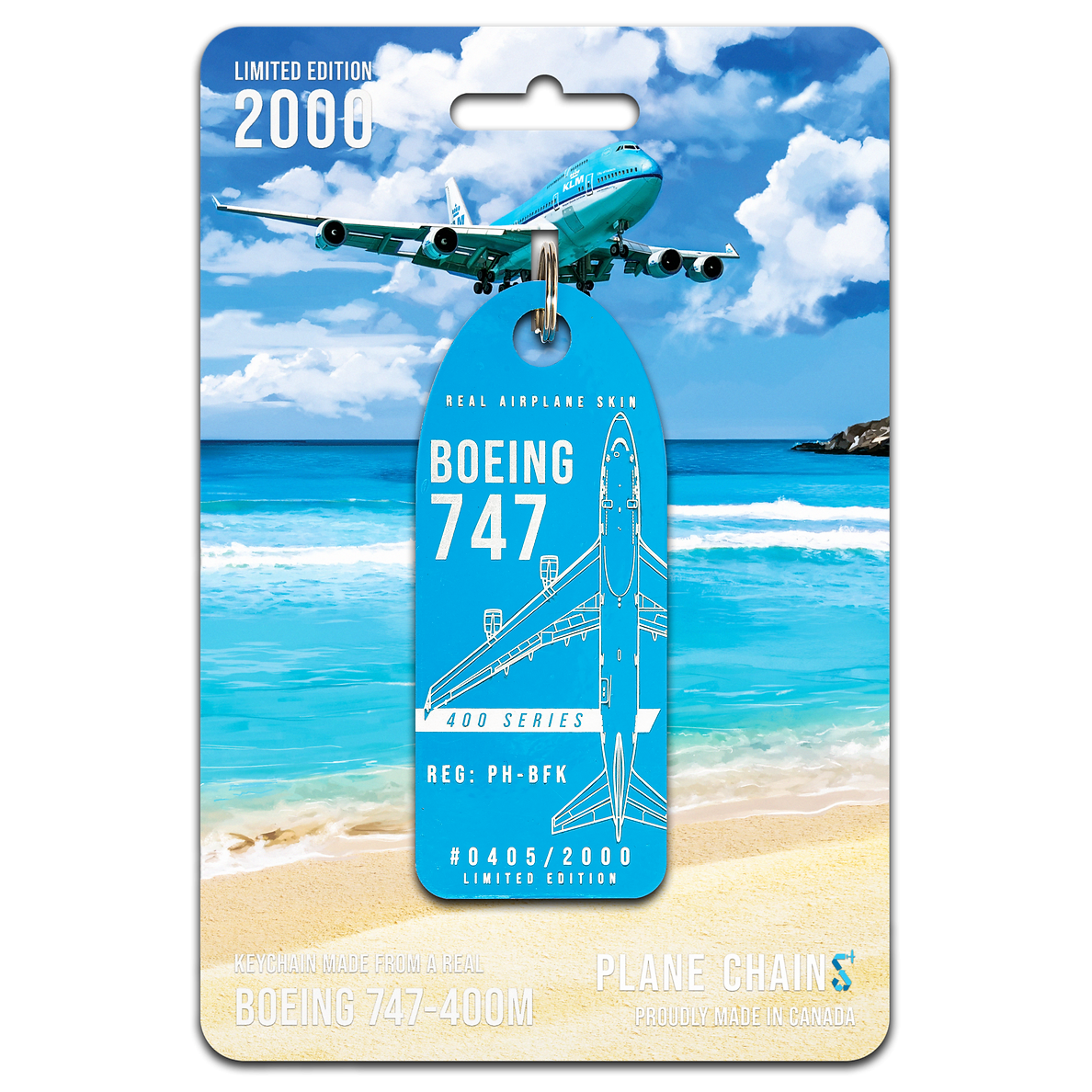These incredible new Plane Chains are crafted from the skin of an ex-KLM 747-400M. They feature the bright blue paint from KLM's iconic livery!