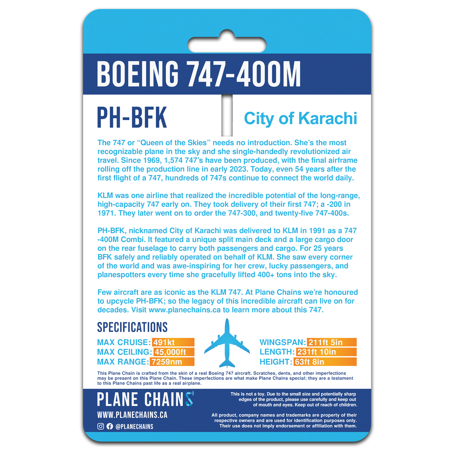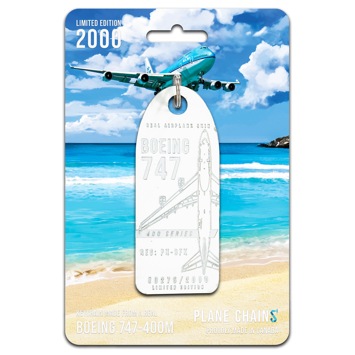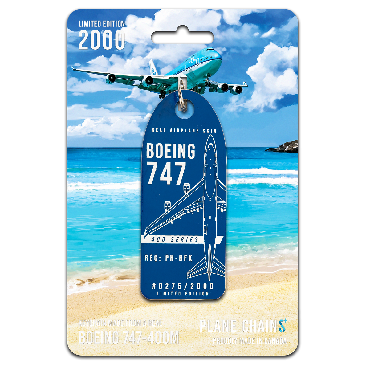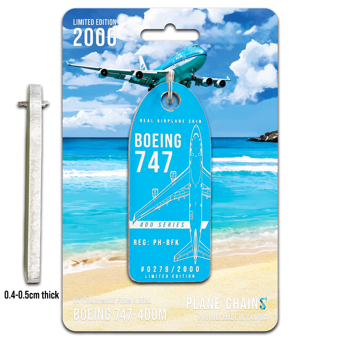 These incredible new Plane Chains are crafted from the skin of an ex-KLM 747-400M. They feature the bright blue paint from KLM's iconic livery!