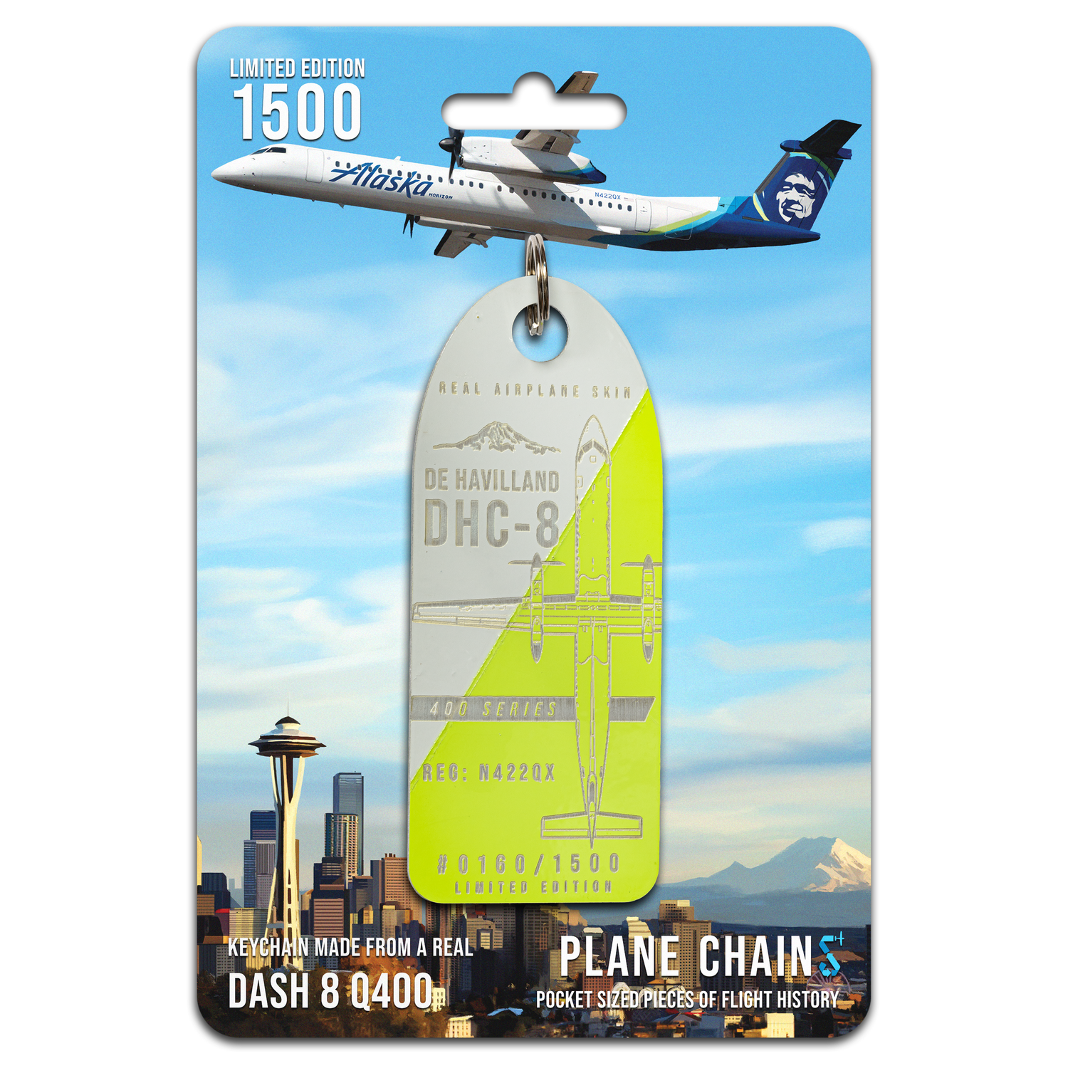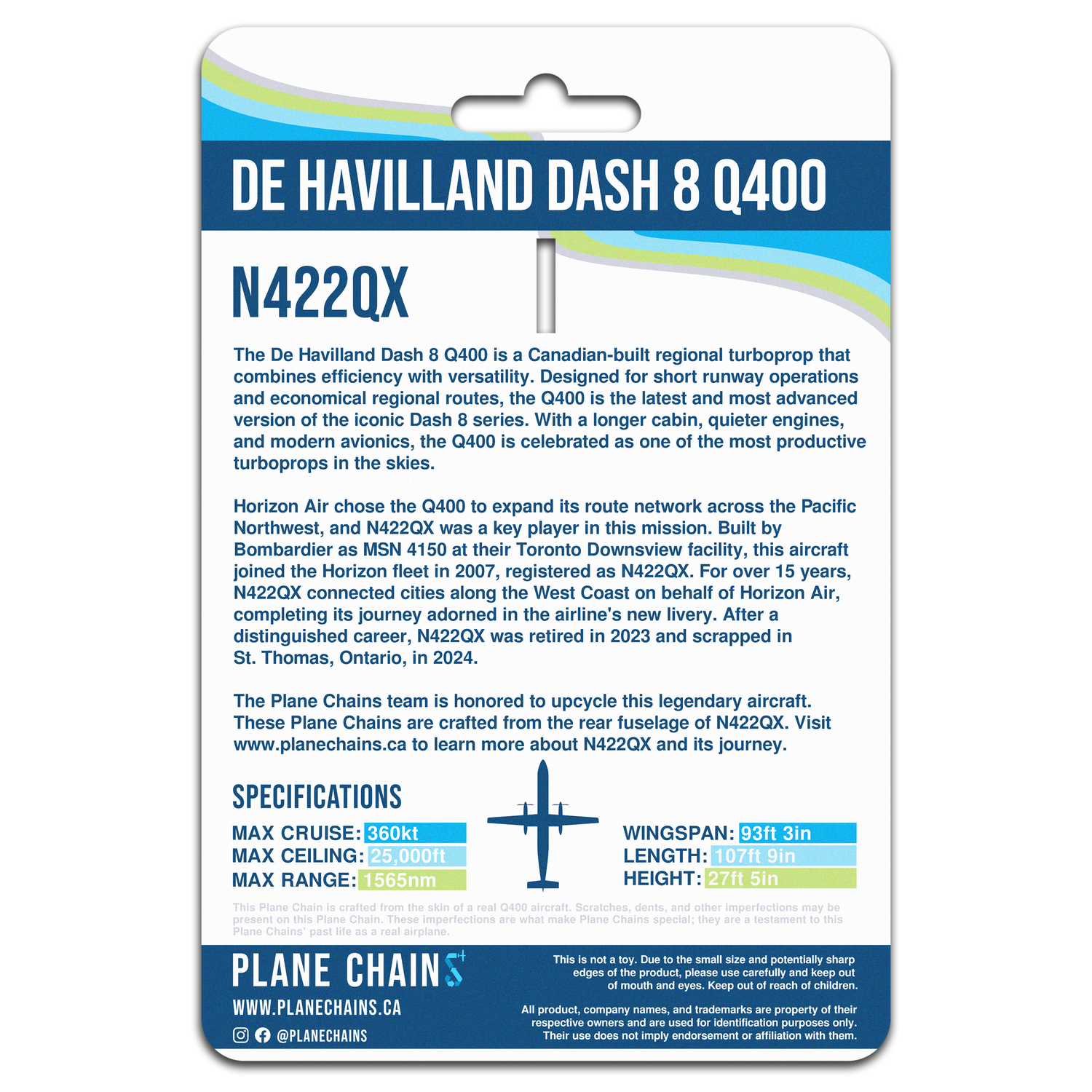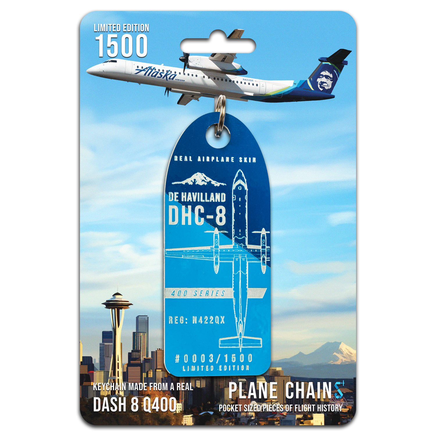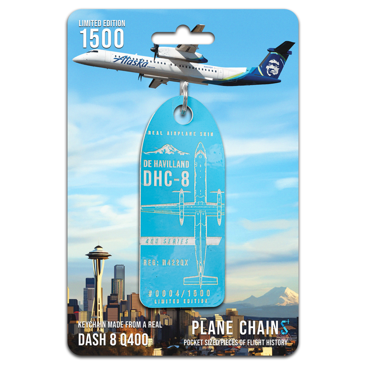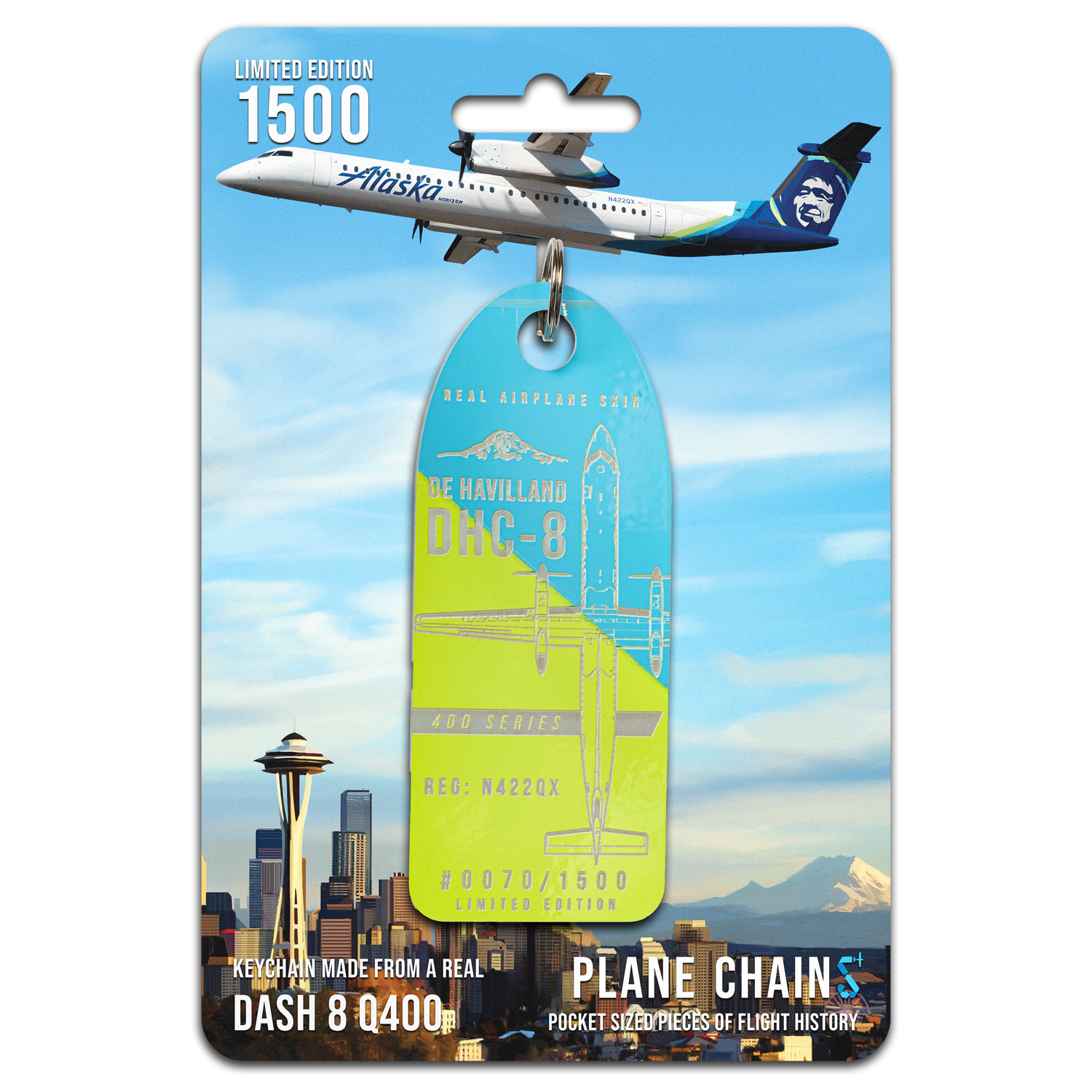 These incredible new Plane Chains are crafted from the aft fuselage of ex-Alaska Horizon Q400; N422QX. They feature all of the beautiful colors of the new Alaska Airlines Livery.
