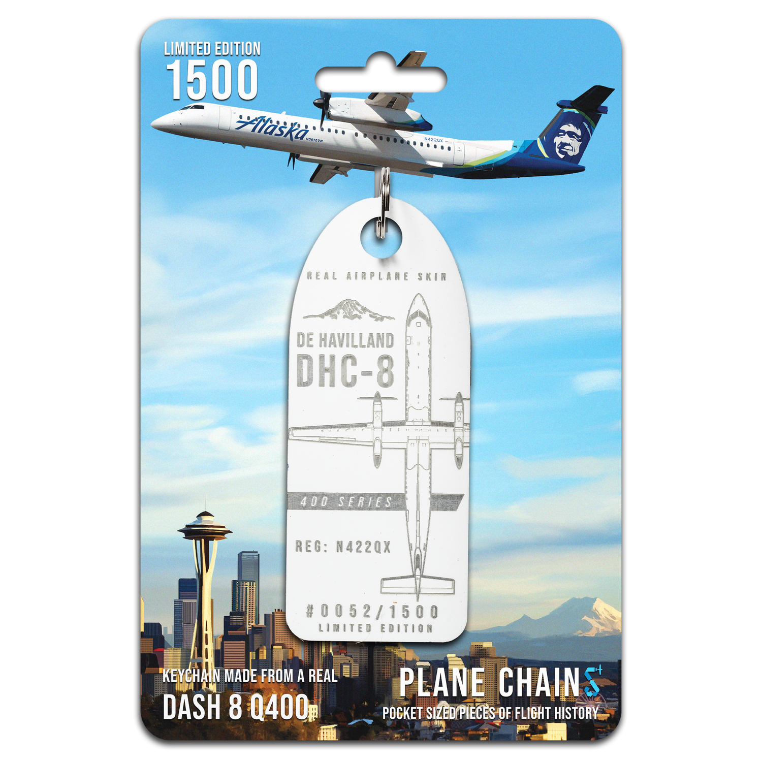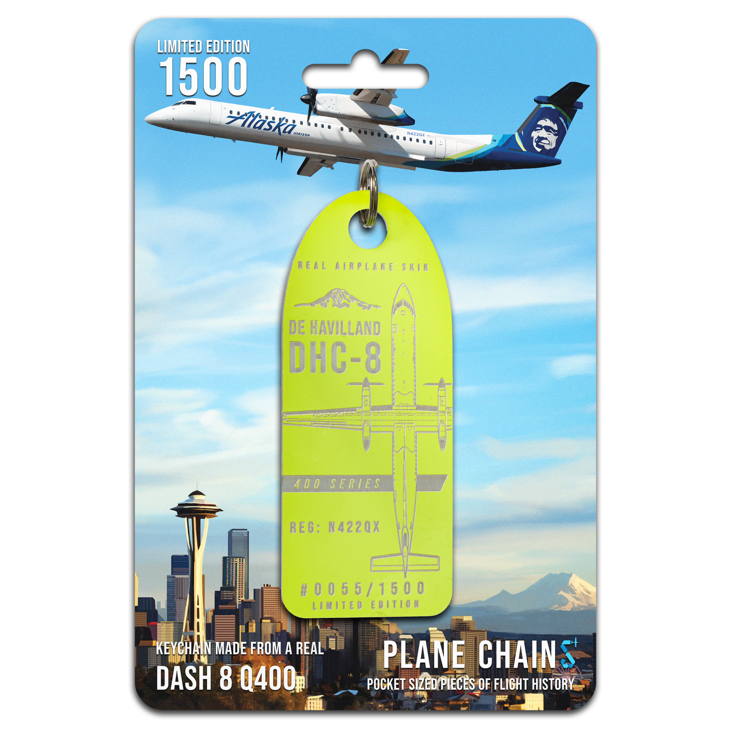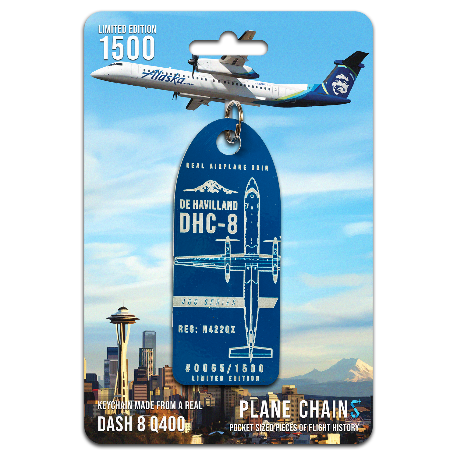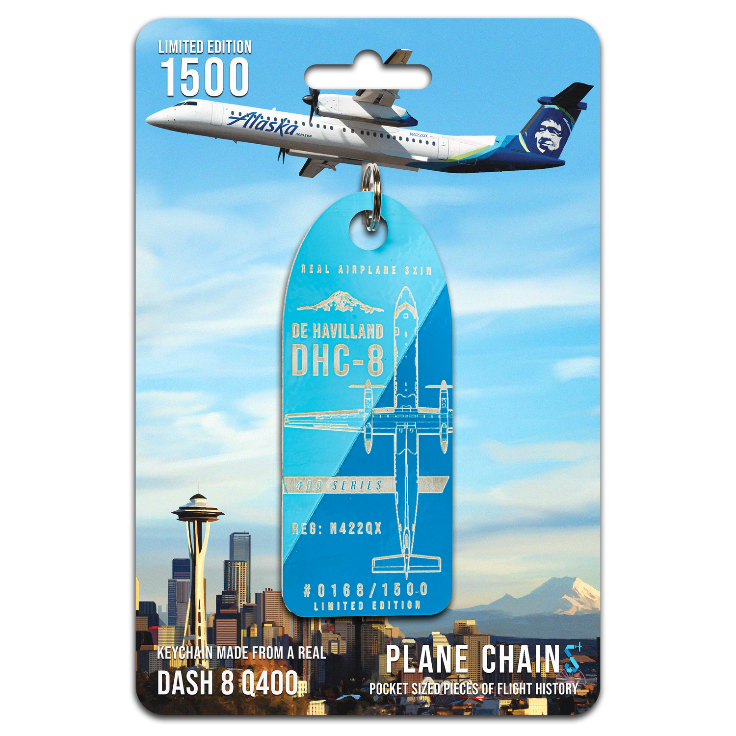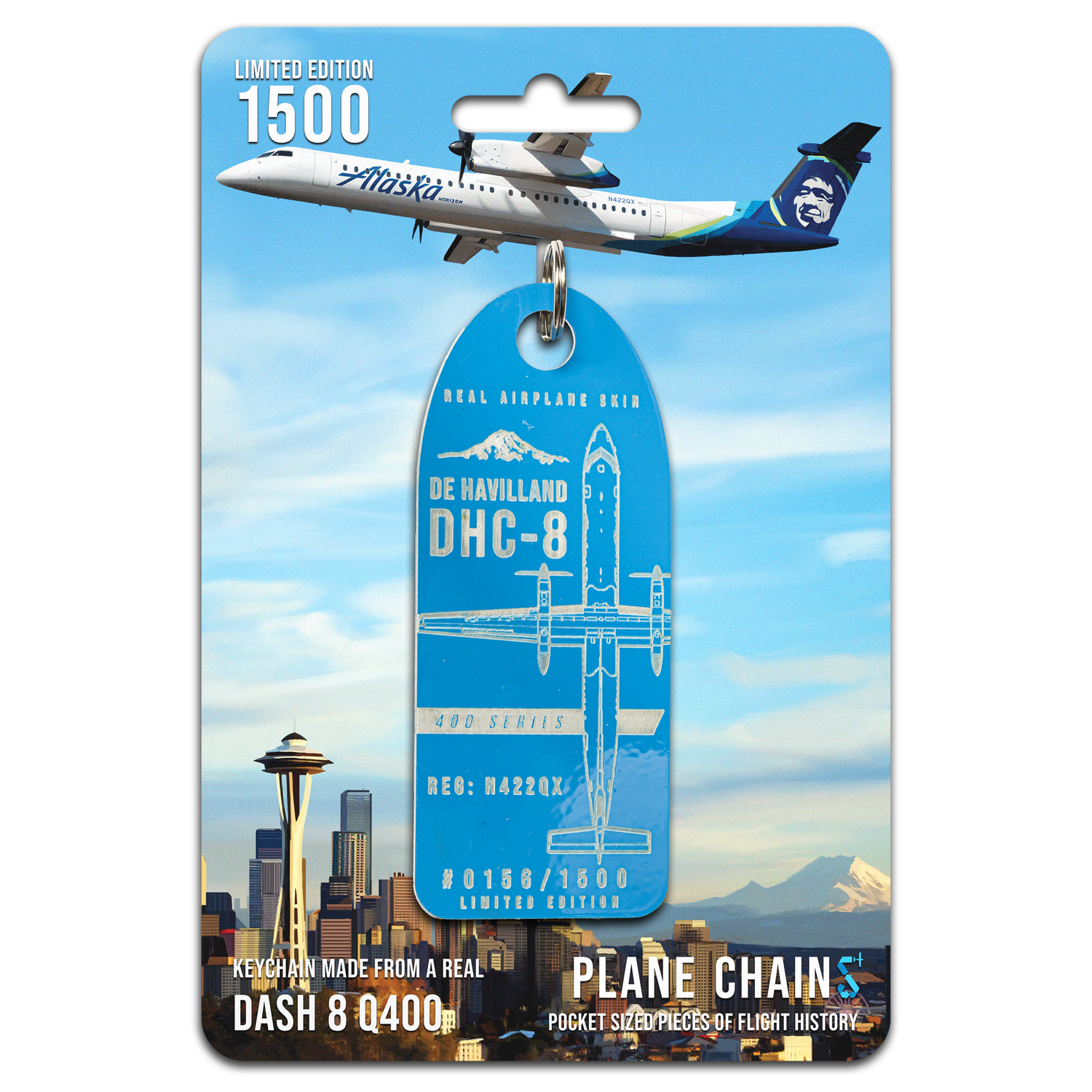 These incredible new Plane Chains are crafted from the aft fuselage of ex-Alaska Horizon Q400; N422QX. They feature all of the beautiful colors of the new Alaska Airlines Livery.