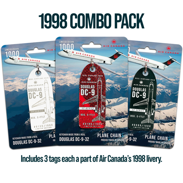 Celebrate the enduring legacy of Air Canada's aviation history with our all new Air Canada DC-9 Tags crafted from C-FTLT – a homage to the longest-serving aircraft variant in the airline's history. We are honored to once again collaborate with our nation's flag carrier to bring you a truly unique piece of aeronautical heritage.