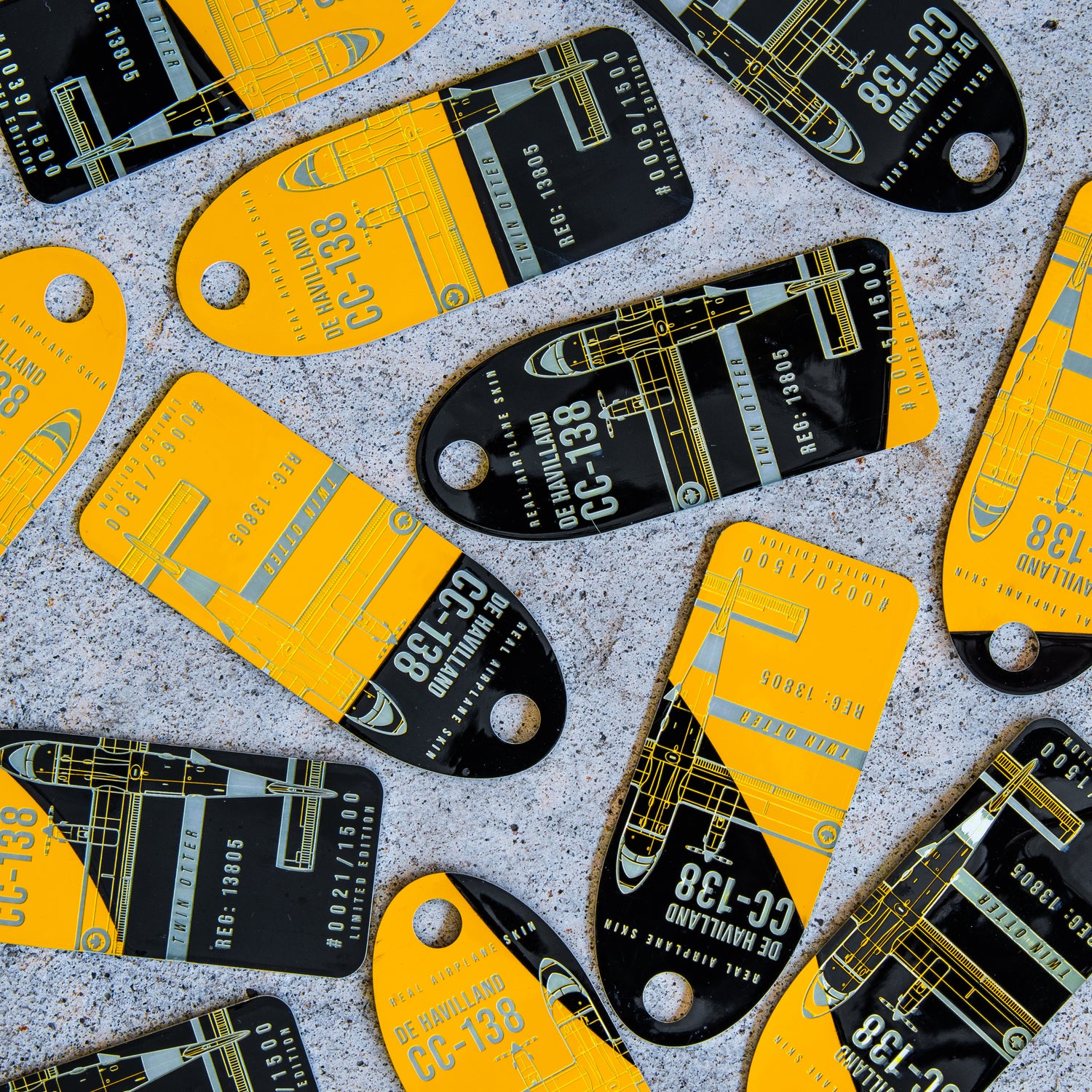 Plane Chains are crafted from the skin of a real aircraft. Scratches, dents, and other imperfections may be present on your Plane Chain. These imperfections are what make Plane Chains special, they are a testament to this Plane Chain's past life as a real airplane.