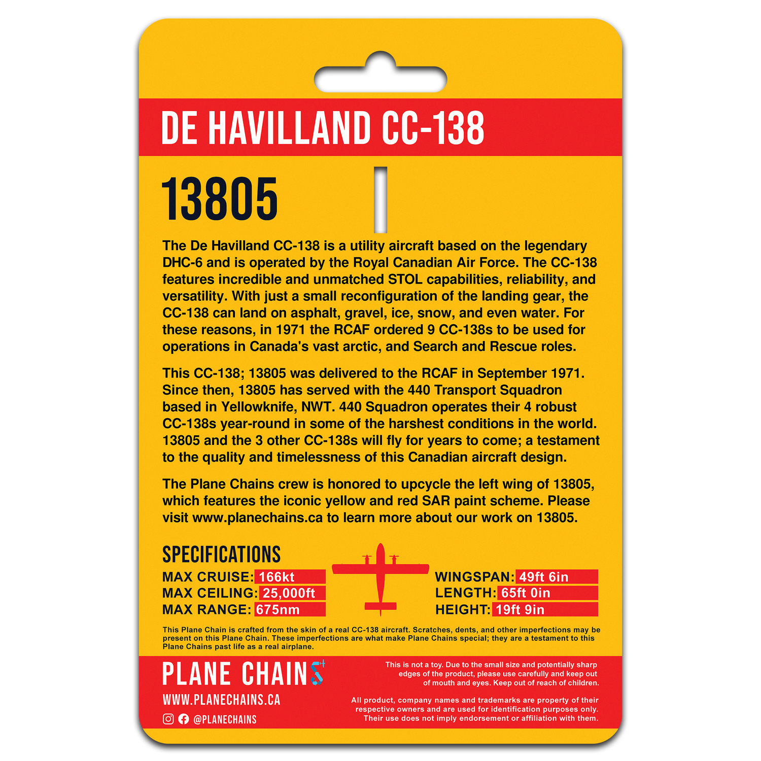 CC-138 #13805 was one of eight aircraft delivered to the RCAF back in 1971. To this day she supports RCAF operations in the remote arctic, as well as Search and Rescue roles. Several years ago, her wings and other structural componenets were replaced as part of a fleet wide life extension program. Even more than 50 years after introduction, there is no aircraft on the market capable enough to fill the shoes of the legendary Twin Otter.